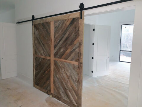 Lots of progress has been made on the construction of the Reeves House! The exterior siding and paint have been completed, the concrete porches have been poured, interior painting has been done, and the shiplap accent wall behind the coffee/wine bar that extends across the adjacent ceiling has also been installed.