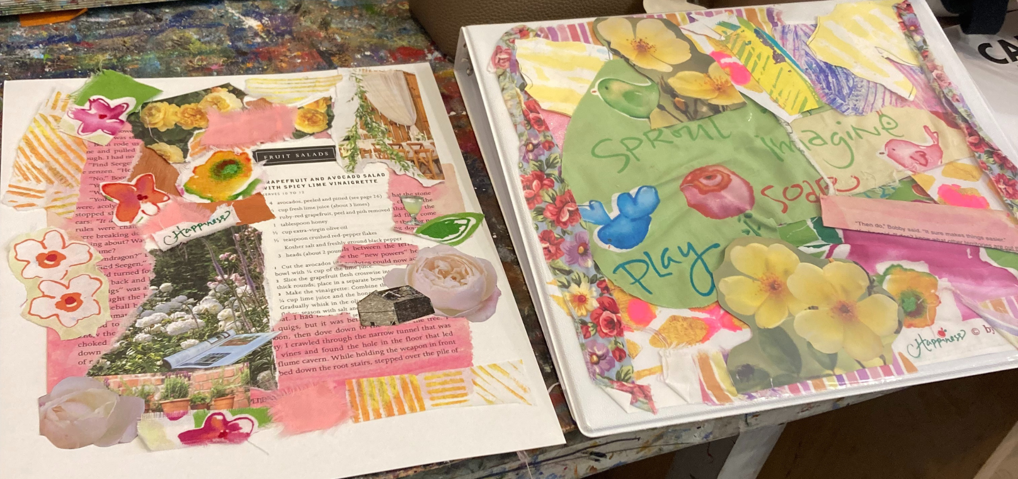– Collage papers (magazines, scrapbook paper, old book pages, tissue paper, wrapping paper, etc)