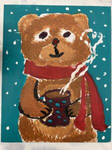 Warm up with creativity! In this one-hour class, young artists will paint a charming bear enjoying a cup of hot cocoa using acrylic paints. We’ll explore color blending, layering, and brush techniques to create a cozy, whimsical painting full of personality. Each student will leave with a finished artwork perfect for winter décor or gifting!